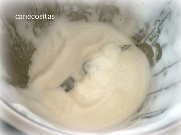 NOTAS: No queda todo espuma, el fondo es leche líquida, pero hay una capa bien gordita y espesa en la superficie y bajo la tapa, de espuma. Si lo dejamos reposar un minuto, todavía queda con más cuerpo, para decorar los cafés.