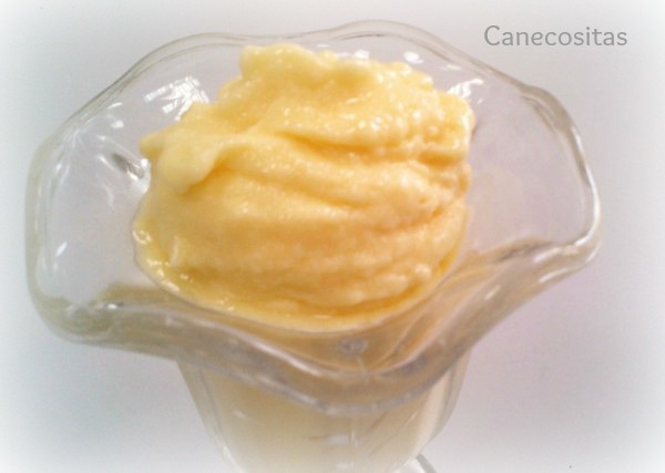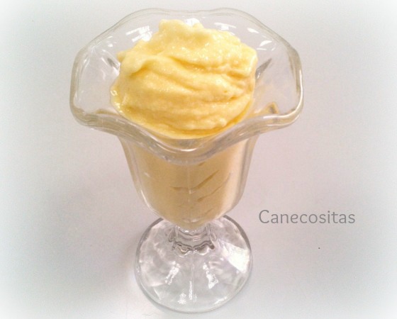 En estas fotos, está servido, tal cual queda en el vaso, la textura es como un sorbete muy espeso, podemos dejarlo en el congelador, un ratito…por ejemplo mientras comes o cenas, para luego poder hacer “bolas”.