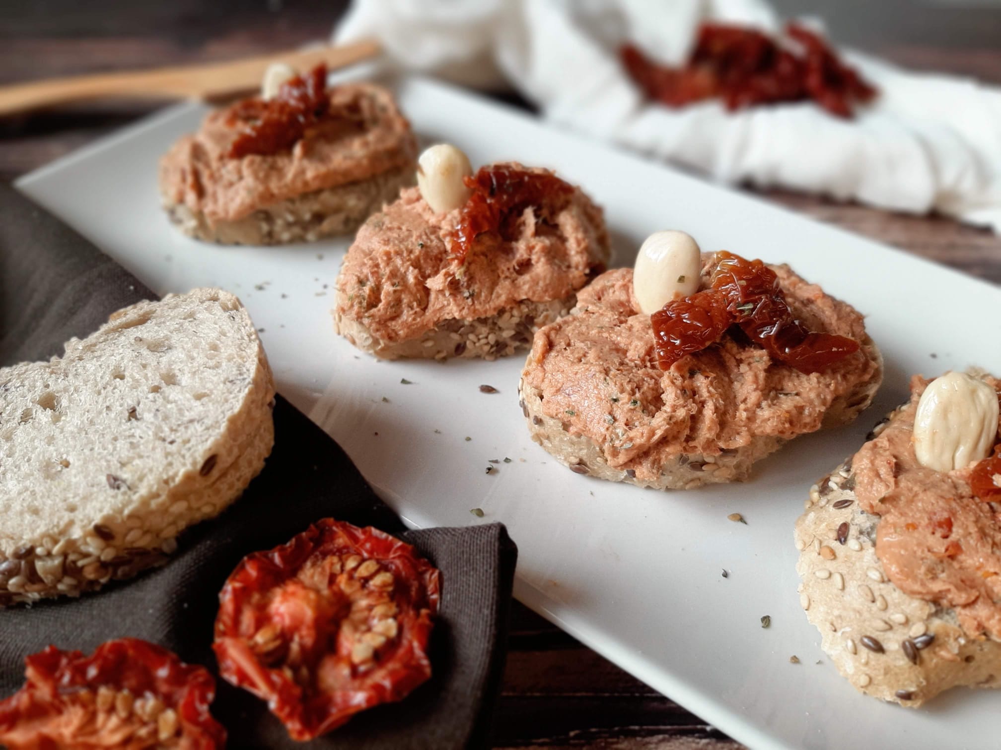 TOSTAS DE PATE DE ATUN Y TOMATES SECOS